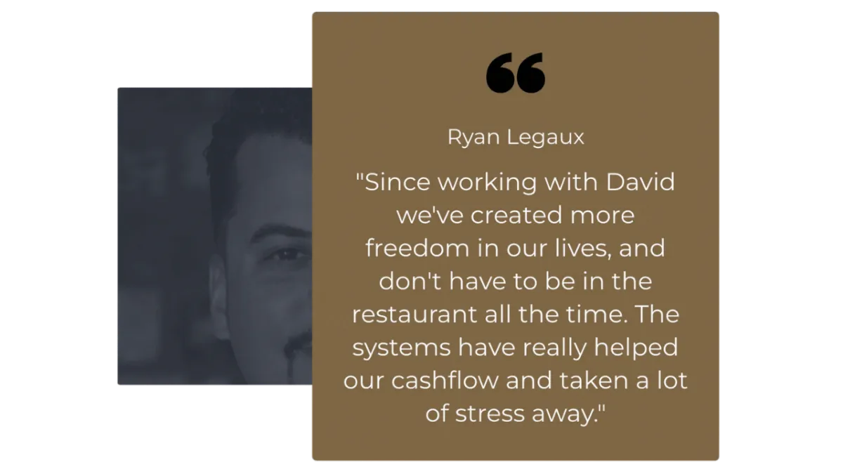 Ryan is a restaurant owner and graduate of David Scott Peters' Restaurant Prosperity Formula program — and a success strategist on David's team. He's been in your shoes, and he knows exactly what the numbers look like when a restaurant is bleeding profit without the owner realizing it.